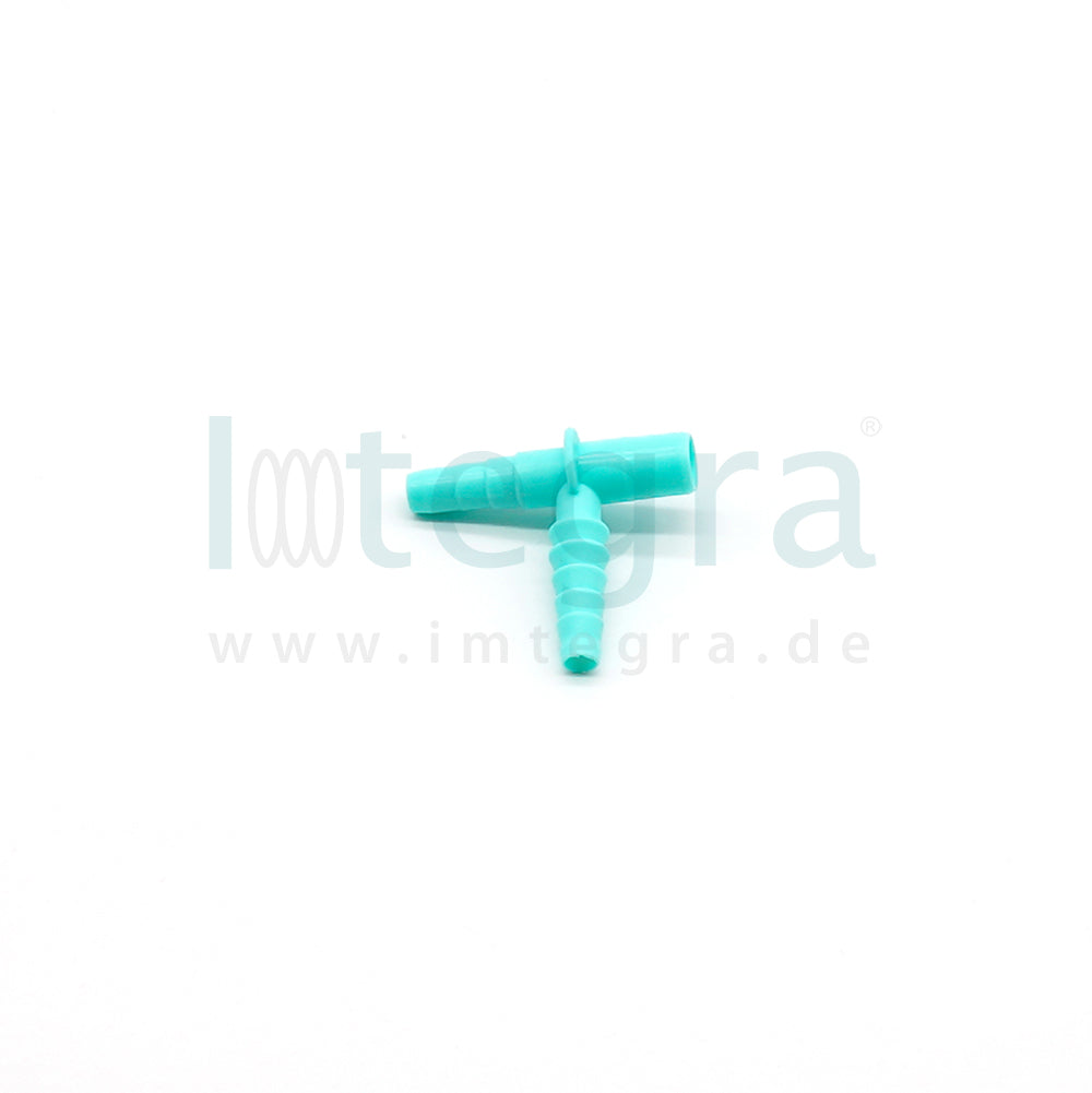 Doppelwinkelstück zum gleichzeitigen Anschluss von zwei Absaugschläuchen pro Absaugbeutel.